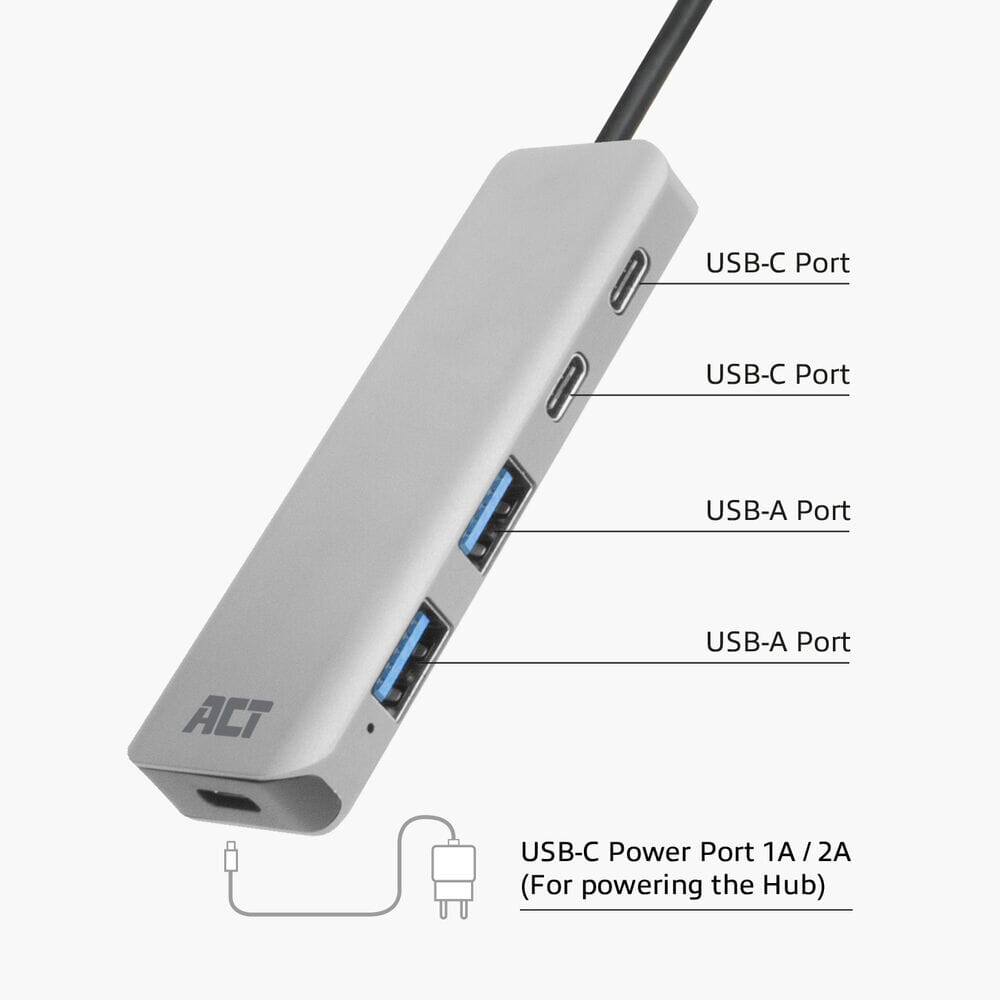 ACT USB-A hub 3.0, 2x USB-A, 2x USB-C