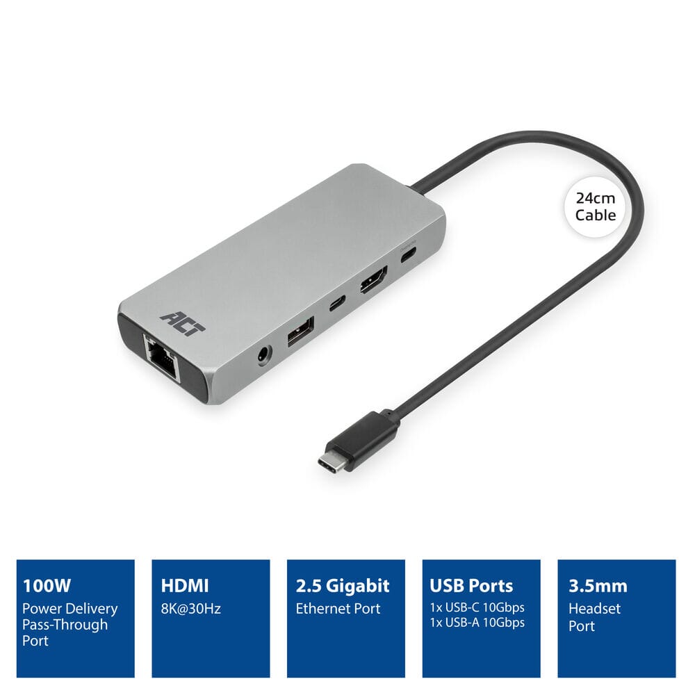ACT USB-C 4K / 8K 60Hz docking station for 1 HDMI monitor