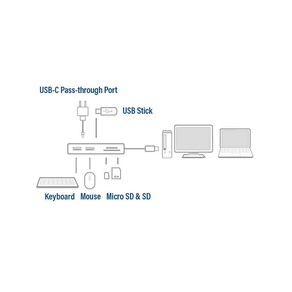 ACT USB-C hub 3.0, 3 poorts, cardreader, PD pass-through