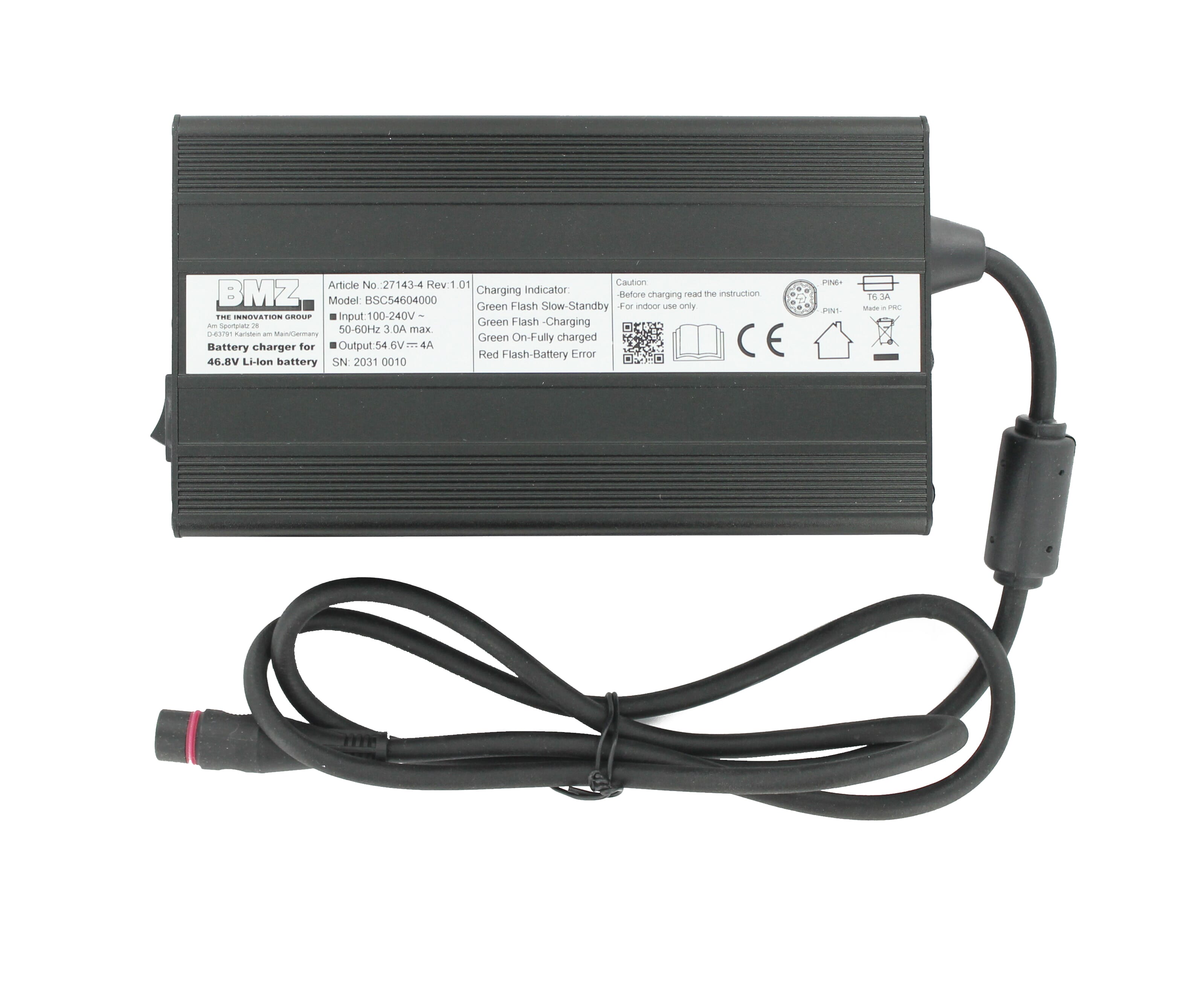 BMZ Fietsacculader 13S 54.6V 4A Plug Hirschmann